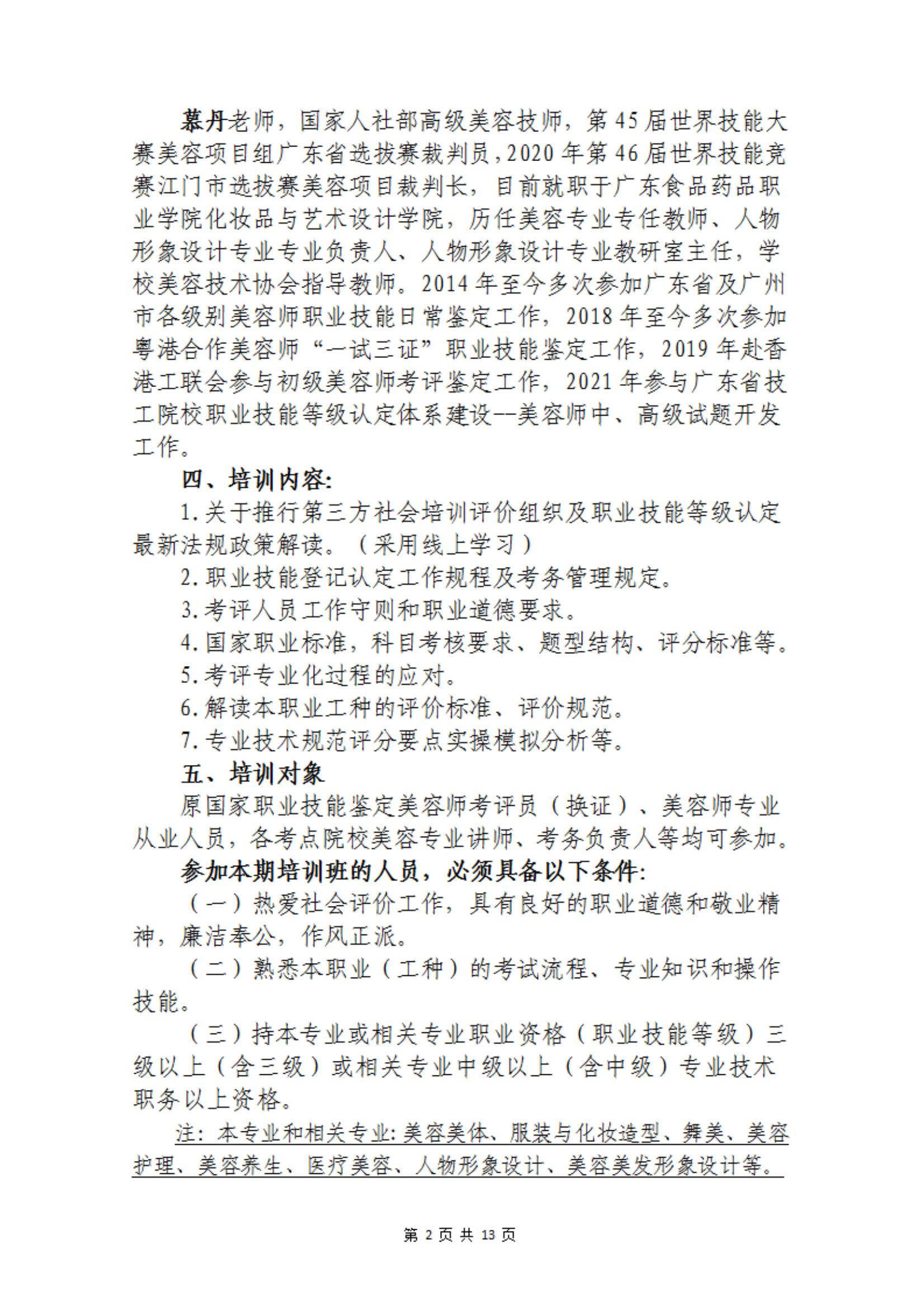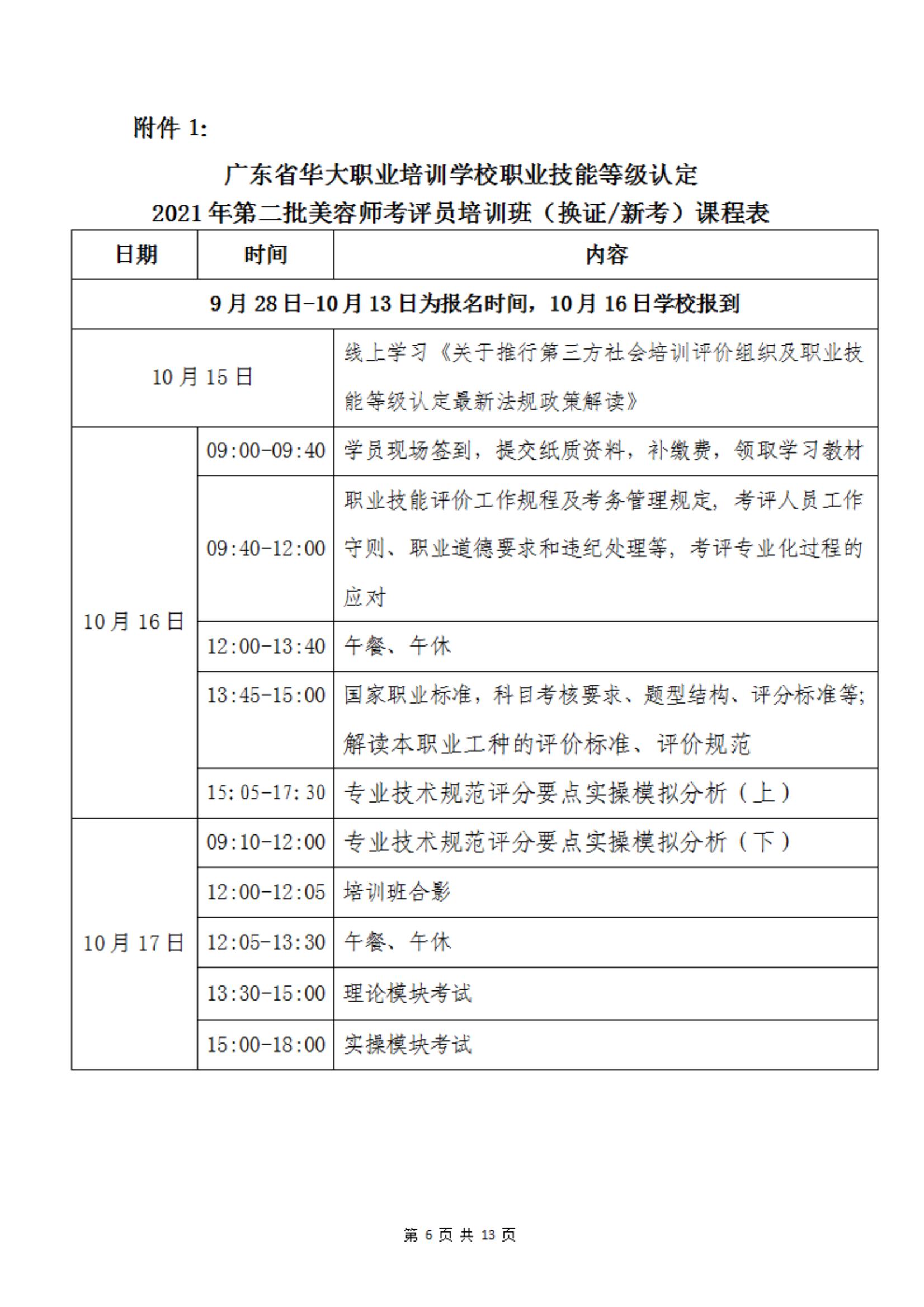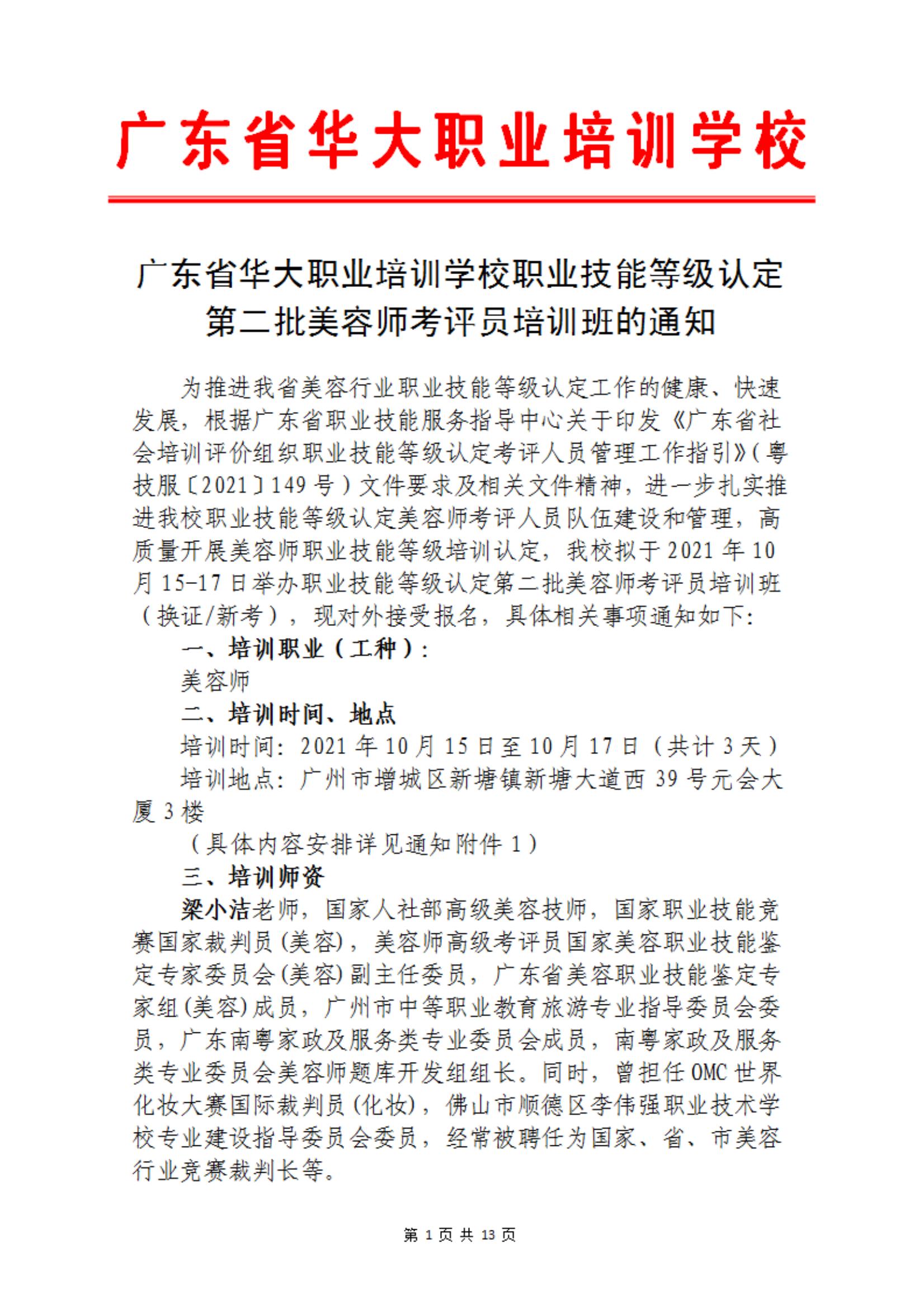 关于举办2021年广东省华大职业培训学校职业技能等级认定第二期美容师考评员培训的通知