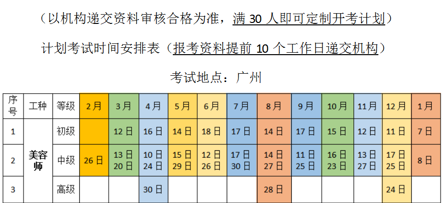 为助力推动我省美容产业健康规范发展,促进我省美容行业从业人员熟悉相关政策法规,以提升职业技能水平为核心,加速人才培养,加强质量管理。根据《广东省企业职业技能等级认定工作指引(试行)》(粤技服〔2020〕65号)的工作要求,广东省华大职业培训学校职业技能等级认定社会评价组织将开展2022年美容师评价认定工作,并逐步在全省各地已通过核验的考点全面开展认定。认定计划如下: