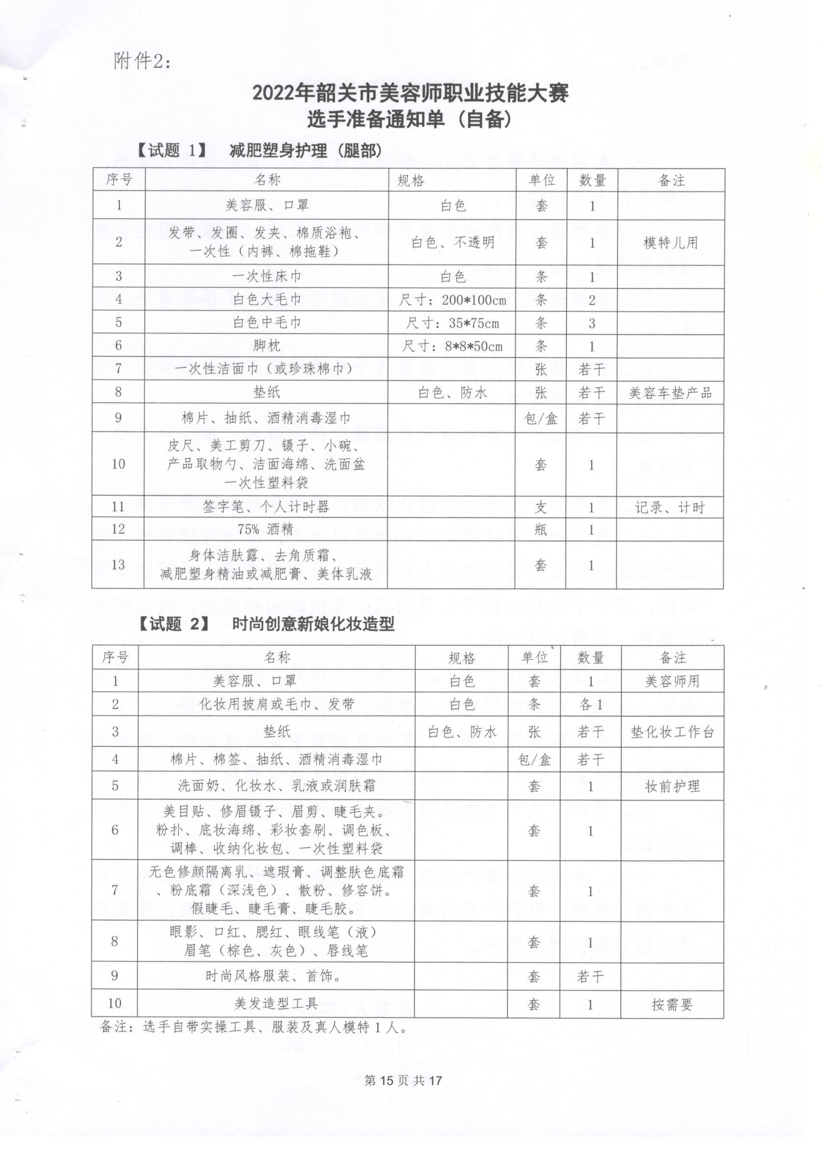 2022年韶关市美容师职业技能竞赛技术工作文件