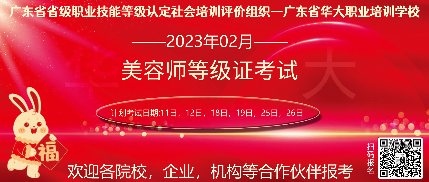 广东省华大学校美容师职业技能等级认定2月美容师考试报名啦