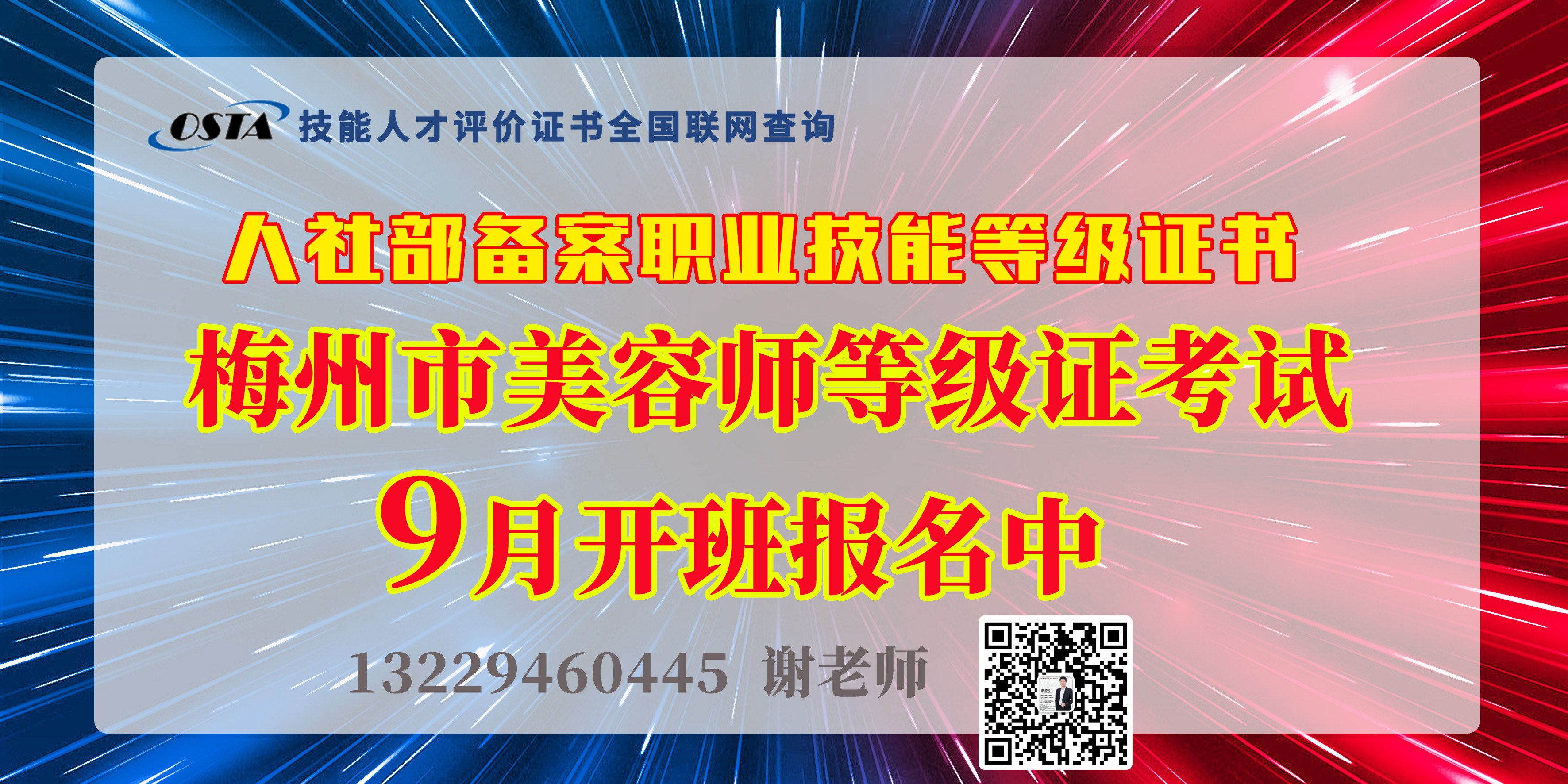 【好消息】9月份开始梅州市本地美容师等级证考试开始报名啦!