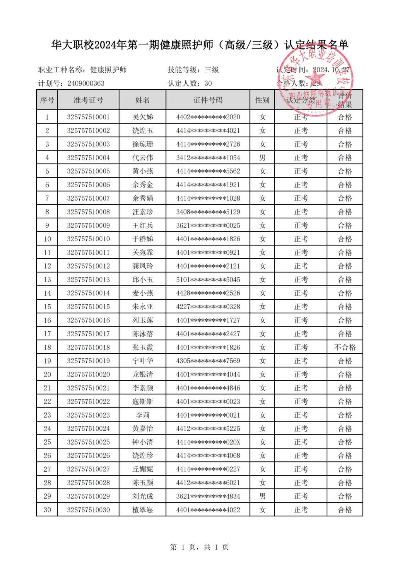 关于华大职校2024年第一期健康照护师(高级/三级)等级认定考试成绩查询的通知(评价计划编号:2409000363)