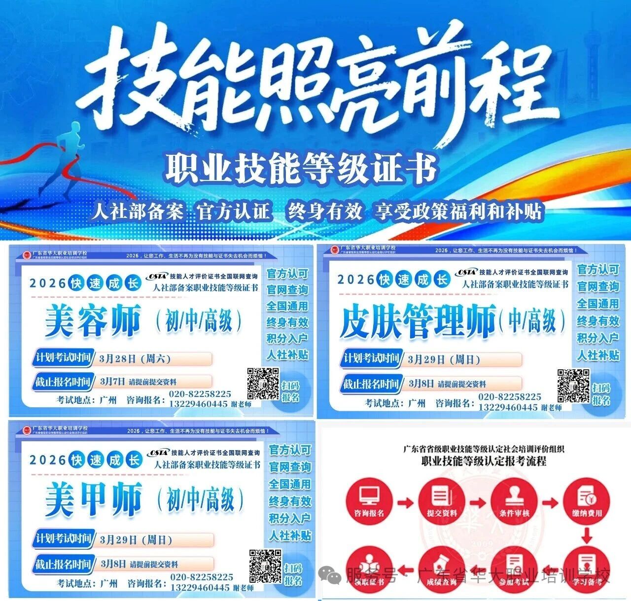 2026年3月广东省美容师|皮肤管理师|美甲师职业技能等级证书考试考试官方报名通道